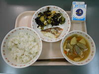 ・グリンピースご飯 ・肉じゃが ・大根とツナの和え物 ・牛乳 |