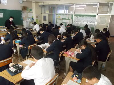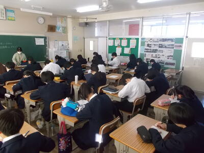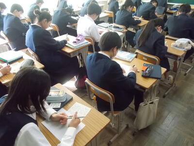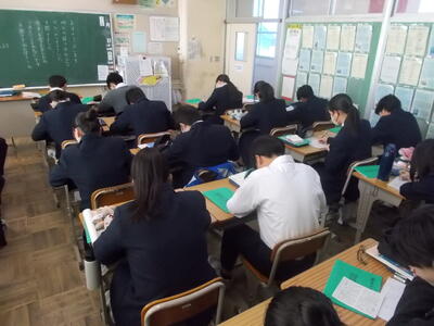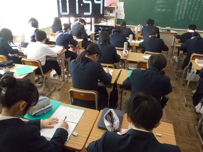 本日第7回目のニースタイムが行われました。新聞の社説を見ながら、決められた時間の中で指定の用紙に社説を書き写しています。